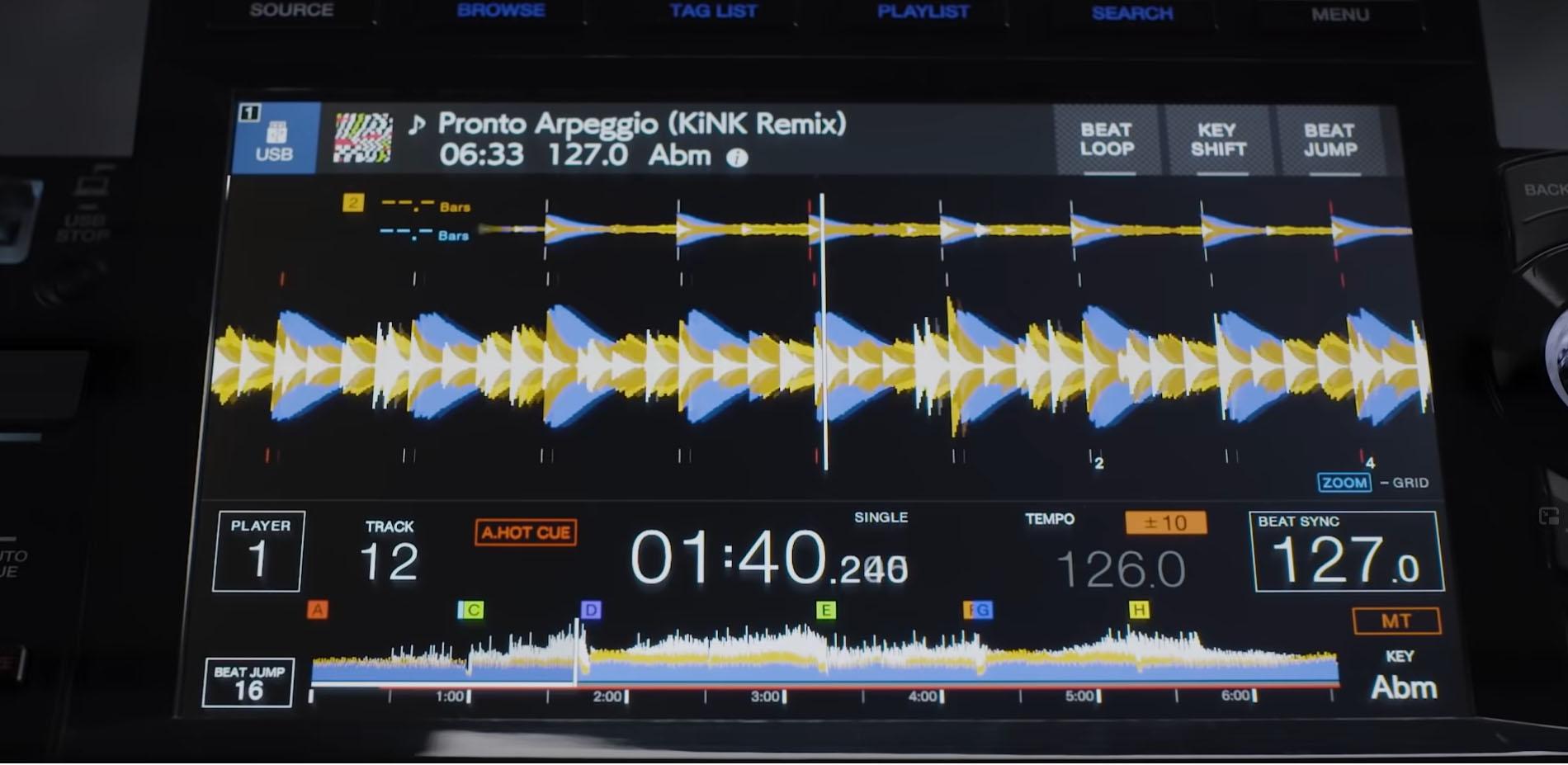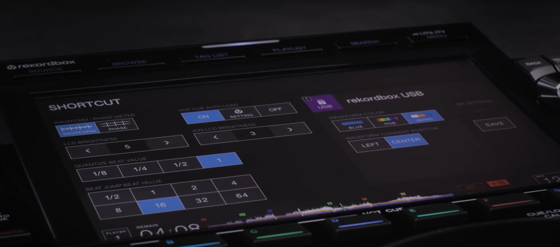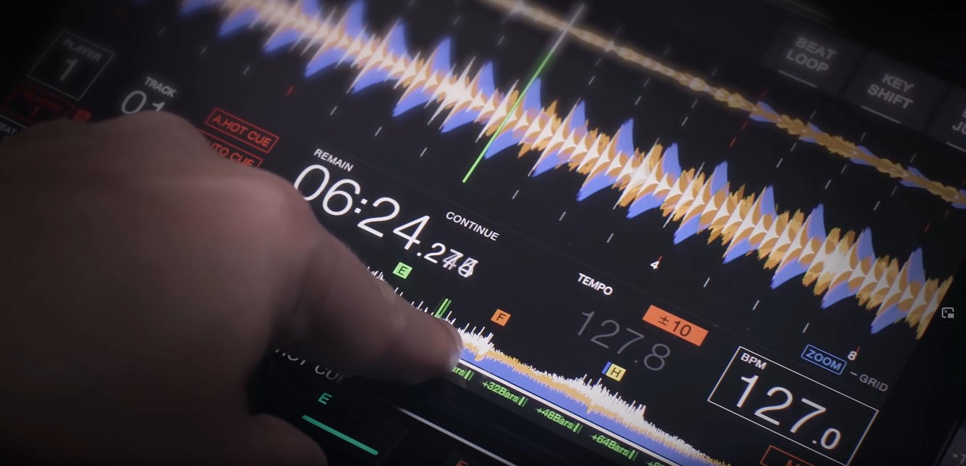A jobb felső sarokból érhetőek el a BEAT LOOP, KEY SHIFT és a BEAT JUMP funkciók, mindegyiknél a szokásos gyors gombokat kapjuk a kijelző közepére, ekkor a nagy waveform kicsit alacsonyabb lesz, de semmi adat vagy infó nem tűnik el!